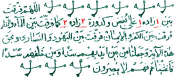 چون بین زن و مردی و یا دو زن یا دو مرد رابطه ای باشد که مشکل ایجاد کند و بودنشان با هم به صلاح نباشد و بیم فساد باشد . این طلسم را بر کاغذ نوشته و سپس در ترشی افکنید و به هر کدام بخورانید دیگر حرفی از دیگری نیاورد و اگر بر قطعه مس بنویسید و با اب بشویید و بر لباسشان بپاشید همین اثر دارد . به جای جاهای قرمز اسامی هر یک را بنویسید. زنهار که به خلاف انجام ندهید. ساعت قمر یا جدایی بنویسید
